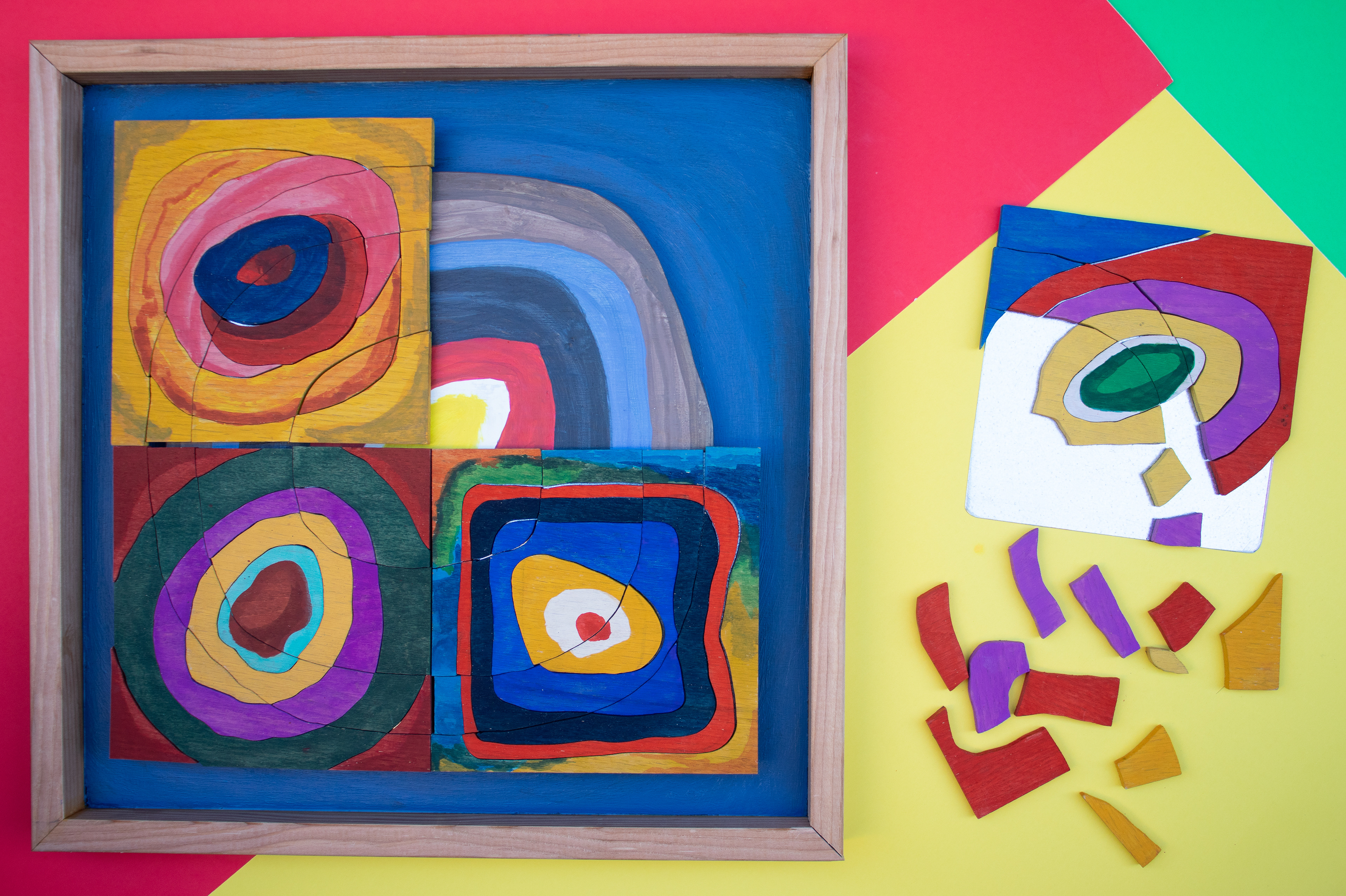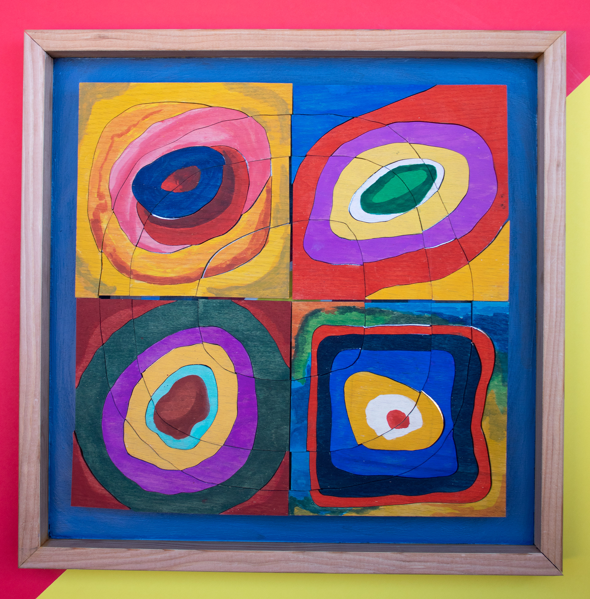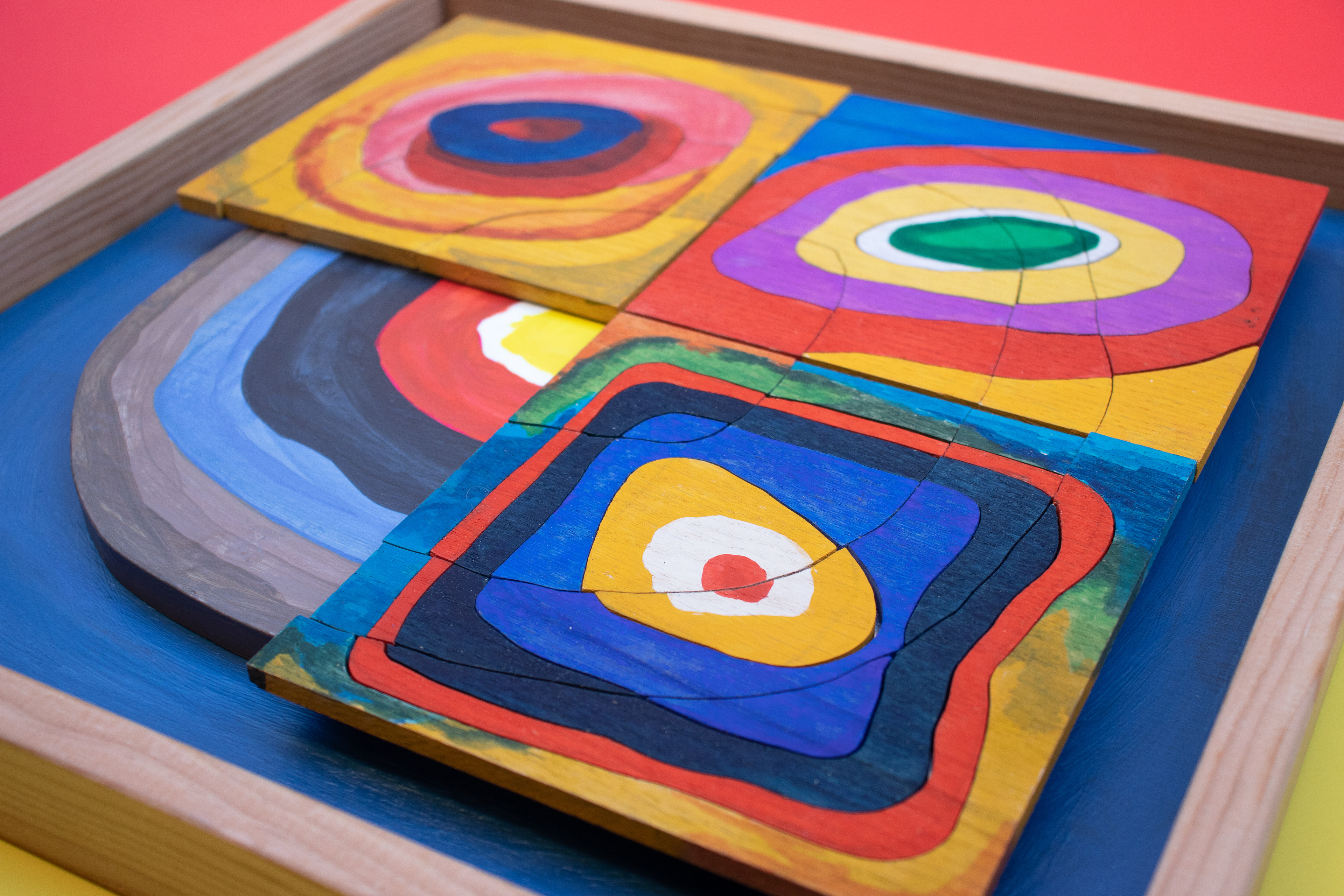 Wood art puzzle inspired by Wassily Kandinsky's color study "Square with Concentric Circles"